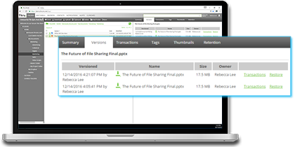 • View transaction details such as the name of the editor, the time of the edit and the file's owner