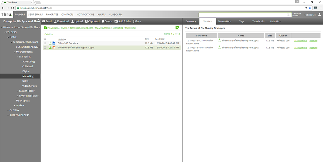 With Thru's Add-In for Office 365, a powerful Office 365 integration, you can now open, create, edit and save files to Thru directly from applications such as Word, Excel and PowerPoint. Skip the web browser logins, save time and enjoy limitless versioning.