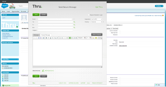 Thru supplements one of the world's most popular CRMs to make it the complete solution for managing all aspects of customer relationships. Thru Add-In for Salesforce removes file and folder size exchange limitations and enables secure tracking. Sales teams have enhanced insights into what files customers are downloading and how to best help them throughout the transaction.